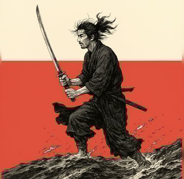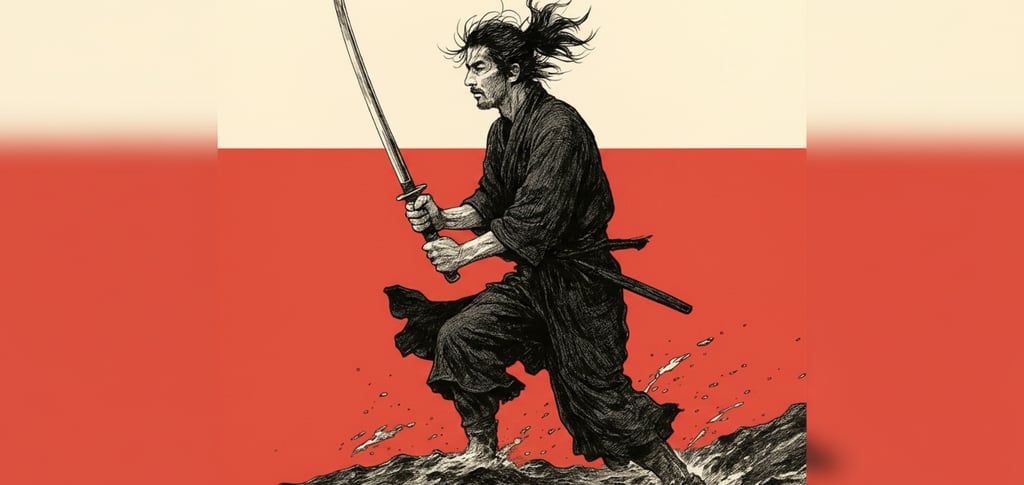 Quando jovem, Musashi era impulsivo, confiava apenas na força bruta. Vencia, mas por pouco. Foi então que ele percebeu algo crucial não só no combate, mas para a vida: A vitória não vinha apenas da espada. Vinha da clareza mental, da estratégia, do domínio sobre si mesmo.